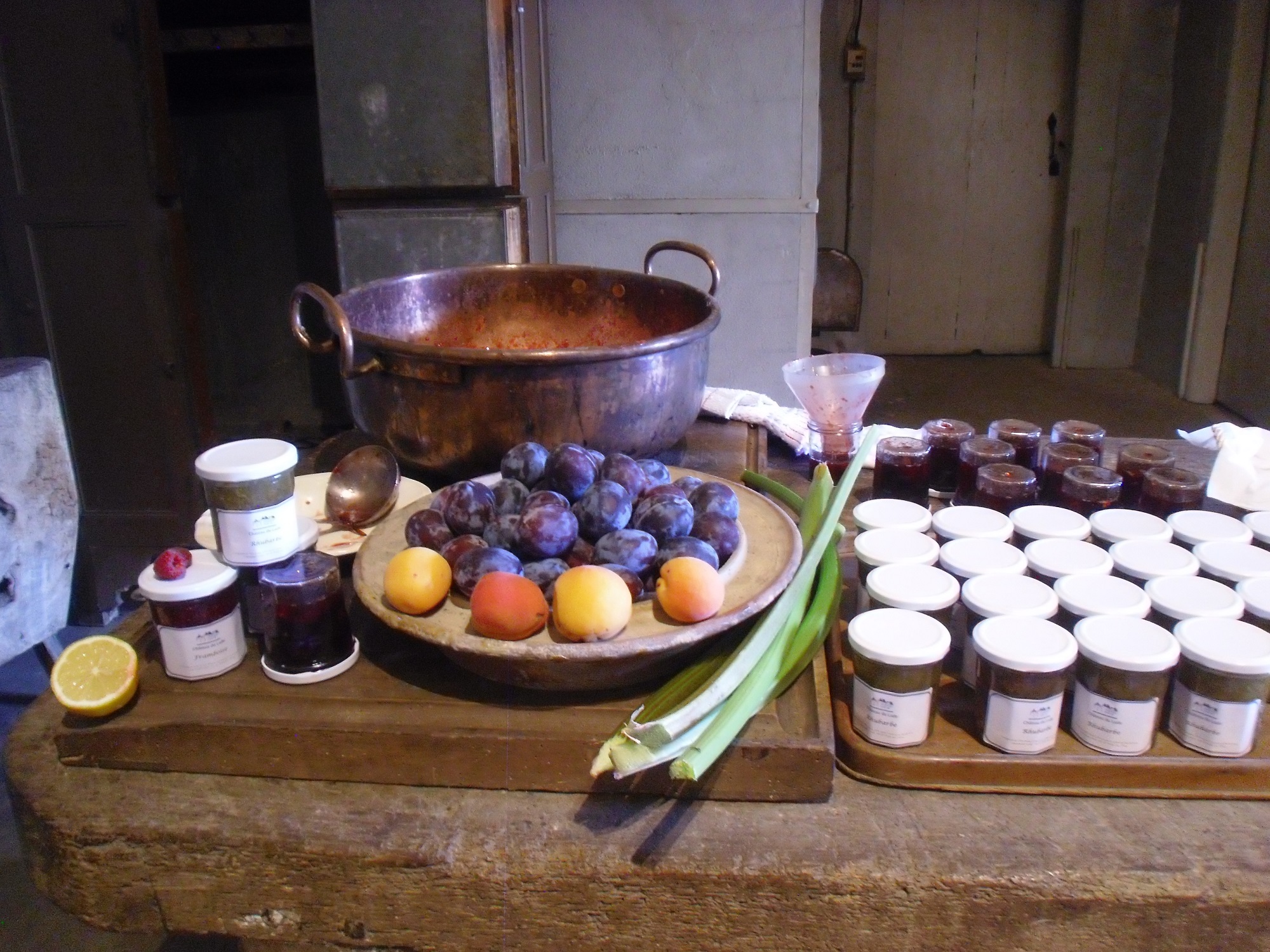 Les confitures mijotent dans les bassines de cuivre sur le fourneau à bois (qui fume de temps en temps lorsque le vent est contraire !) tandis que les crêpes s’empilent sur le bain marie. Un parfum d’antan envahit la maison et invite à la dégustation.